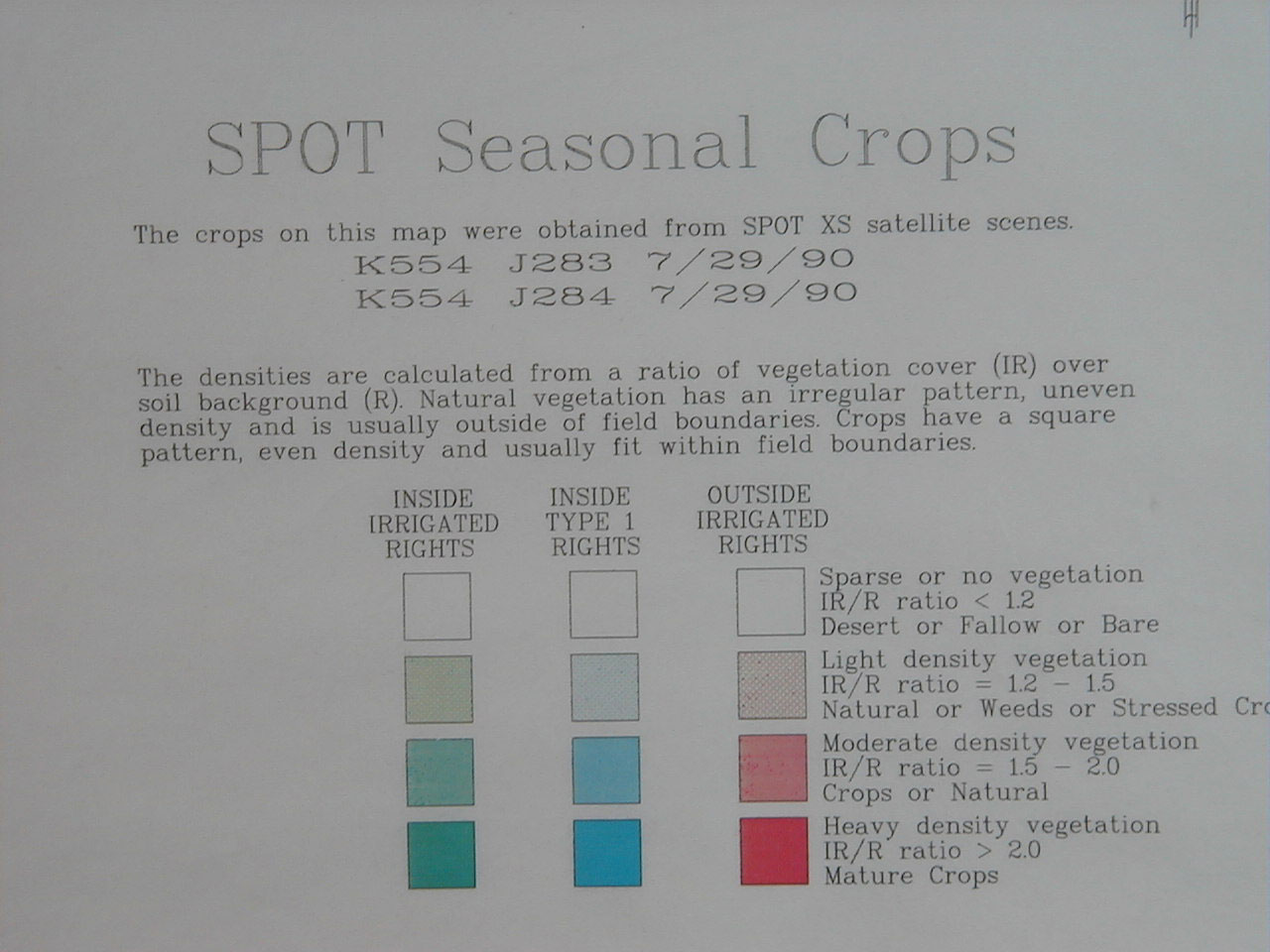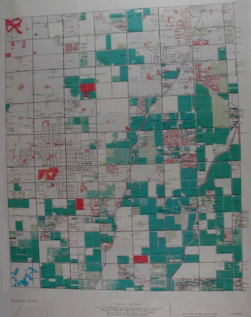 Using GIS to combine SPOT image with parcel map. USGS topographic sheet backdrop. The ribbon-shaped land use parcels at the upper and lower left corners are golf courses. Read the legend below for further detail.
