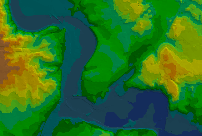 15 or 20 feet of elevation, ranging from deep blue at 750+ feet to rust