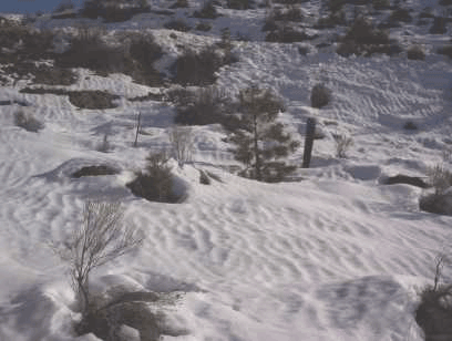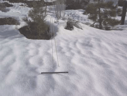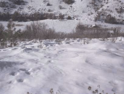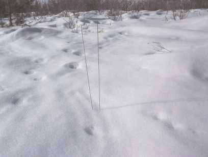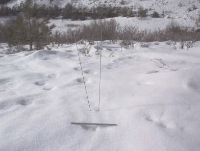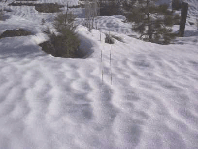 Energy Flow: Spatial and Temporal Patterns Peter A. Martin* Department of Geography Oregon State University INTRODUCTION "The flow of energy through a system tends to organize that system" (Fuller, 1). This organization reveals itself by the appearance and propagation of spatial and temporal patterns on the system surface. For example, stream flow may separate and distribute alluvium according to its density. Wind blowing over featureless water may engender a rich field of periodicity in waves and aligned streaks of foam. A more prosaic example of "organization" arises in the generation of washboard on an unpaved road with the passage of traffic. The tendency toward organization or pattern seems to be "in the cards" (see, eg. 2), and operates across a great range of scales (see, eg., 3), which may account for the fractal, or scale-wise self-similar, character of nature. We suggest that, by adopting the expectation that organization should accompany the flow of energy, one might anticipate the discovery of patterns; moreover, one might conversely take patterns to be the evidence of the flow of energy, and look for other accompanying patterns. DISCUSSION OF OBSERVATION AND EXPERIMENT The case-in-point flow of energy here is the waxing insolation as we move from winter solstice toward summer solstice. The observed pattern was that of waves in the surface of melting snow. The wave crests tended to be aligned roughly east-west, amplitude of the order 1cm, wavelength of the order 10cm. The conjecture was that these waves might be driven by the sun, and that they might be propagating northward because of their self-effect: intensified melting on their south faces, and protection of their north faces by their own aspect. (This propagation would be an accompanying pattern not immediately apparent to the senses because of the temporal scale.) To gauge possible wave propagation, two 1/8" wood dowels were stuck through each of two waves and into the earth below, one at a crest and one at an adjacent trough. (See Figures 1-4.) The relative positions of the waves and dowels were observed 24 hours later. (See Figures 5-6.) Advancement of the snow waves was apparent in both cases. The propagation was more apparent with reference to the crests than with reference to the troughs, but amounted to approximately 3cm in both cases. The snow depth at the time the dowels were placed (9:15 local time) was approximately 23cm, and the snow depth at the second observation, 24 hours later, was approximately 20cm. It was apparent that the presence of the dowels induced increased melting (so that the dowels did not remain perfectly upright). The effect of the dowels on the snow waves was small. CONCLUSION This rather whimsical research experiment arose because of the flow of information (which is akin to energy) through a system predisposed by its nature to exhibit organization. That is, the system (the mind of the observer) was predisposed by its nature to exhibit organization, given the flow of information. More to the point of geography: we might expect that, wherever there is spatial pattern, there might be temporal propagation. Stationary waves are usually associated with resonance, a phenomenon that is characteristic of a bounded system. Further examples of temporal patterns that might be suggested by their accompanying spatial patterns include the advancement of stream meanders, and the spreading of the sea floor. Readers are invited to speculate on the temporal aspect