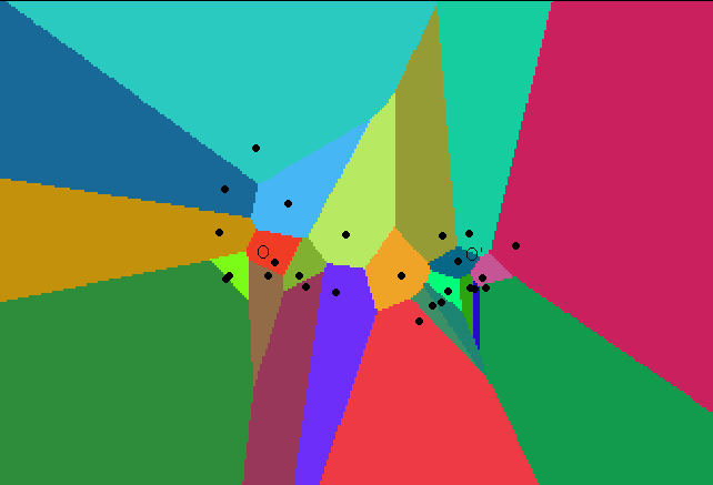 10. Jefferson, Mark. 1928. The Civilizing Rails. Economic Geography, 1928, 4, 217-231. 11. Kopec, R. J. 1963. An alternative method for the construction of Thiessen polygons. Professional Geographer, 15, (5), 24-26. 12. Ladak, Alnoor and Martinez, Roberto B. Automated Derivation of High Accuracy Road Centrelines Thiessen Polygons Technique. http://www.esri.com/library/userconf/proc96/TO400/PAP370/P370.HTM 13. Murray, Alan and Gottsegen, Jonathan. The Influence of Data Aggregation on the Stability of Location Model Solutions http://www.ncgia.ucsb.edu/~jgotts/murray/murray.html 14. Natural Neighbor Interpolation. http://www.ems-i.com/smshelp/Scatter_Module/Scatter_Scattermenu/Natural_Neighbor.htm 15. Nystuen, J. and Brown, D. 2001. Coordinators, UM GIS Lecture Series. Lecture by Arthur Getis: "Spatial Analytic Approaches to the Study of the Transmission of Disease: Recent Results on Dengue Fever in Iquitos, Peru". 16. Nystuen, J., 1966. "Effects of boundary shape and the concept of local convexity;" Michigan Interuniversity Community of Mathematical Geographers (unpublished). Reprinted, Ann Arbor: Institute of Mathematical Geography. 17. Okabe, A.; Boots, B.; and, Sugihara, K. 1992. Spatial Tesselations: Concepts and Applications of Voronoi Diagrams. Wiley Series in Probability and Mathematical Statistics. Chichester: John Wiley & Sons. 18. Ord, J. Keith and Getis, Arthur. 2001. "Testing for Local Spatial Autocorrelation in the Presence of Global Autocorrelation." Journal of Regional Science, Vol.. 41, No. 3, pp. 411-432. 19. Perkal, Julian, 1966. "An attempt at objective generalization;" Michigan Interuniversity Community of Mathematical Geographers (unpublished). Reprinted, Ann Arbor: Institute of Mathematical Geography. 20. Rhynsburger, Dirk, 1973. Analytic delineation of Thiessen polygons. Geographical Analysis, 5, 133-144. 21. Thiessen, A. H., and Alter, J. C.. 1911. Climatological Data for July, 1911: District No. 10, Great Basin. Monthly Weather Review, July:1082-1089. 22. Thiessen Polygons. http://www.geog.ubc.ca/courses/klink/g472/class97/eichel/theis.html Software used