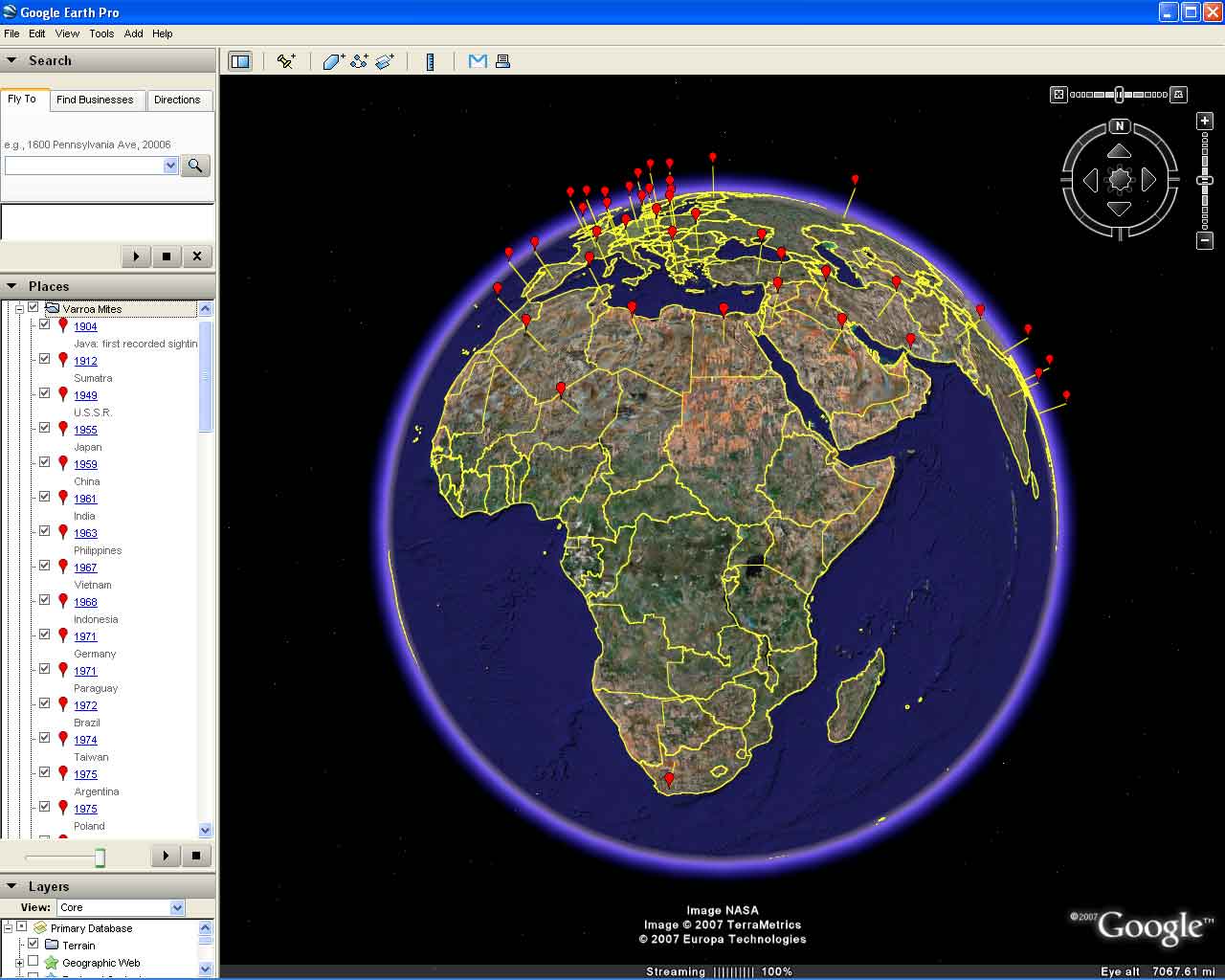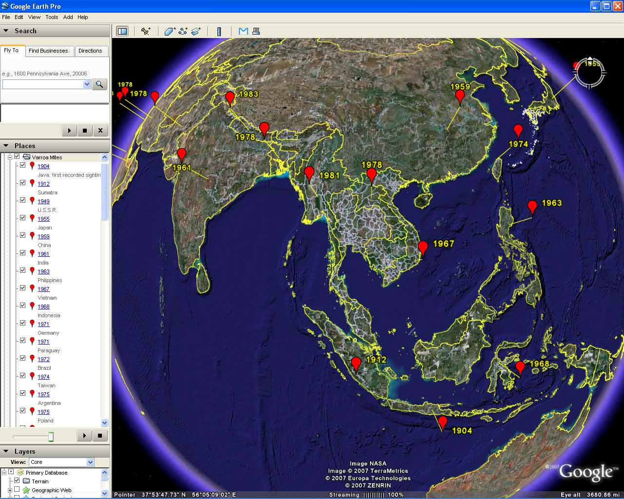 Sammataro's data is recast in Google Eart
