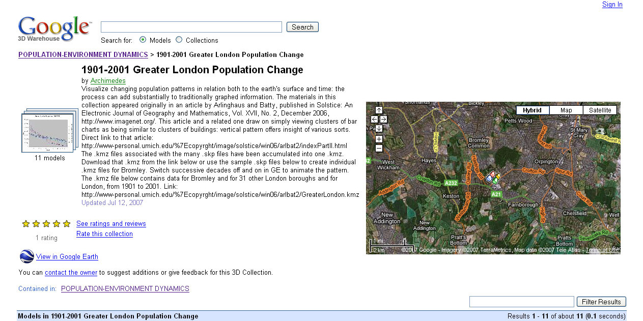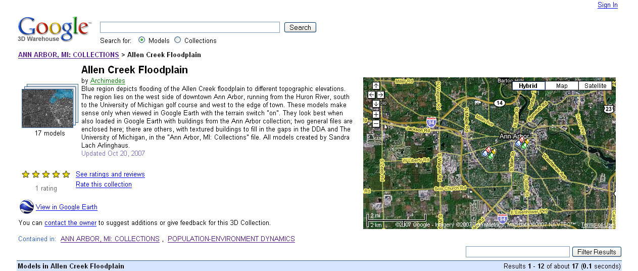 ![]() Google Earth Experiments in Innovative Scientific Communication Sandra Lach Arlinghaus [also known as "Archimedes" in the Google 3D Warehouse] |
