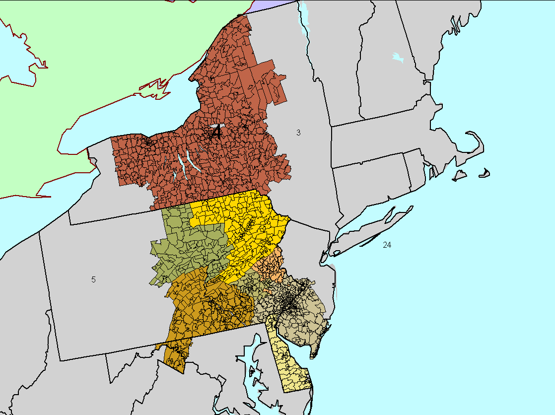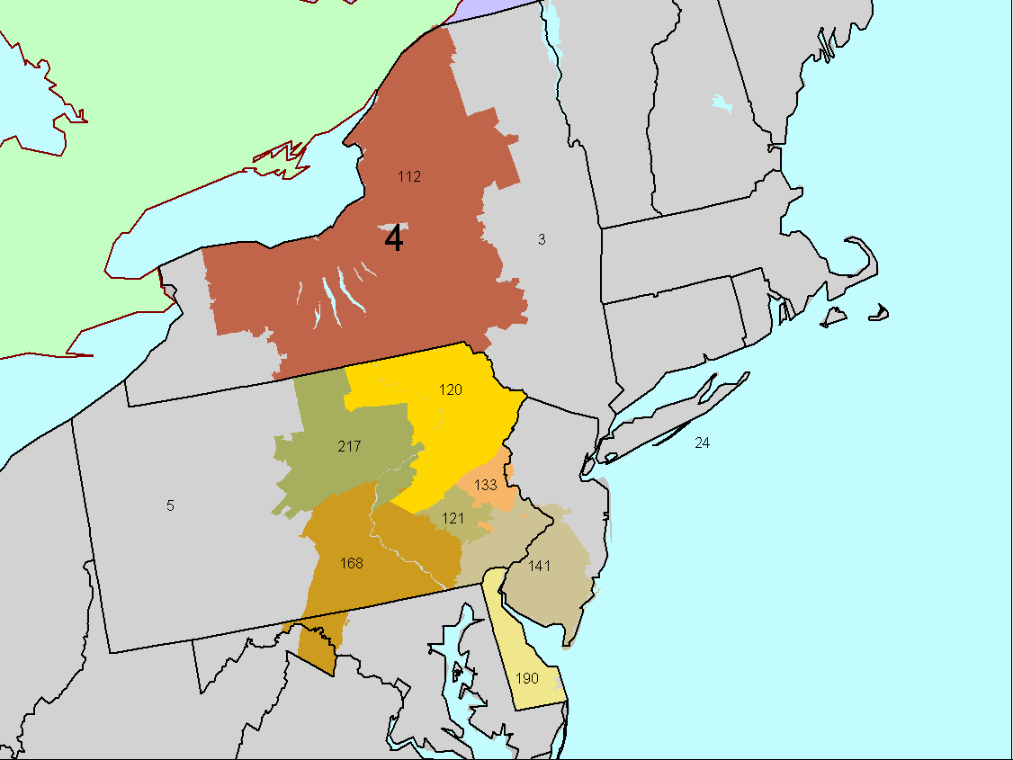 | District 4: Central New York, Eastern Pennsylvania, Delaware, Southern New Jersey. | ![]() |