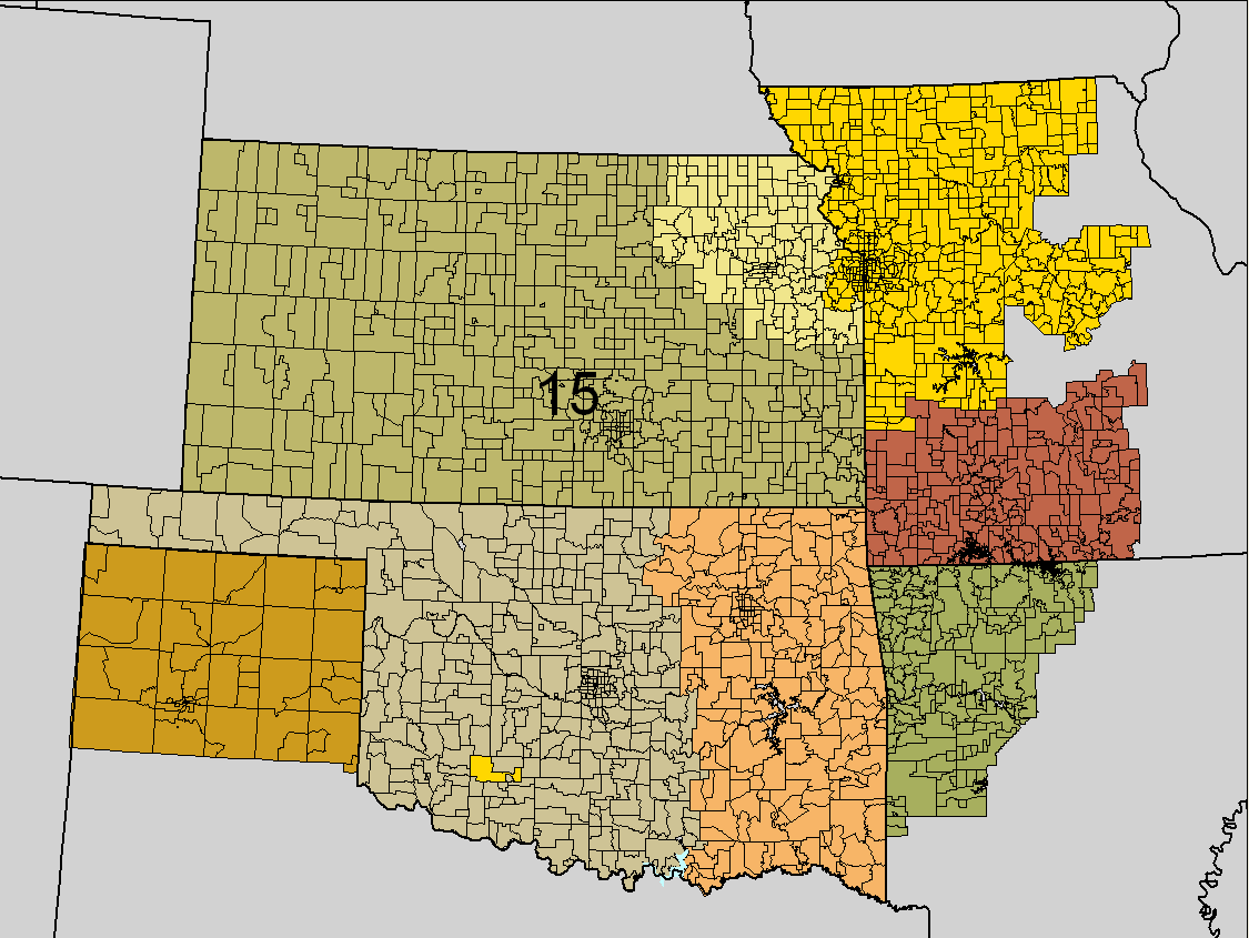| District 15: Southwest Missouri, Kansas, Oklahoma, Western Arkansas, and Northern Texas | ![]() |