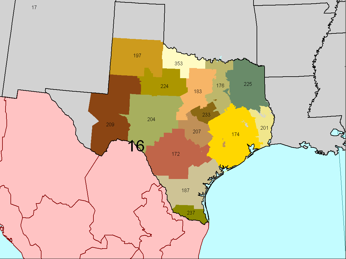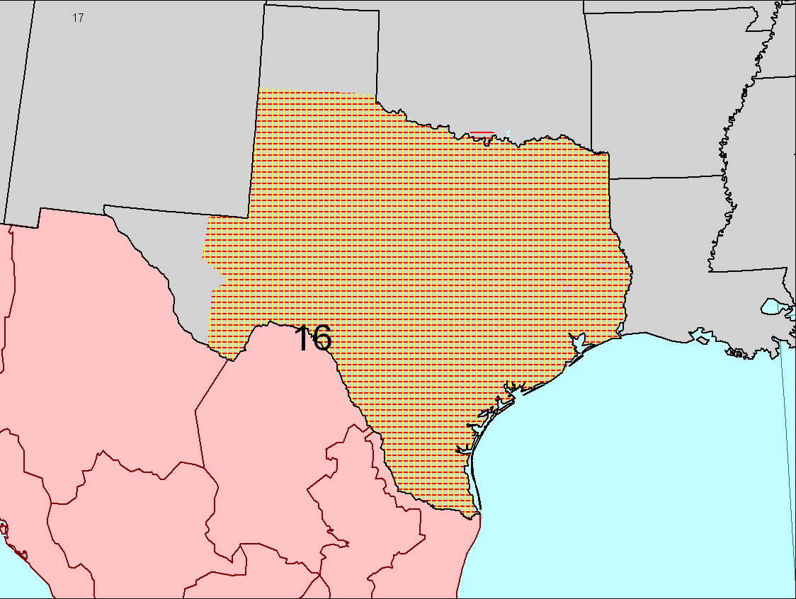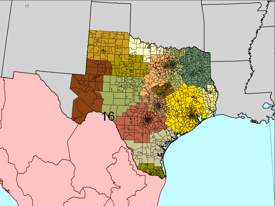 | District 16: Most of Texas, all of Mexico |