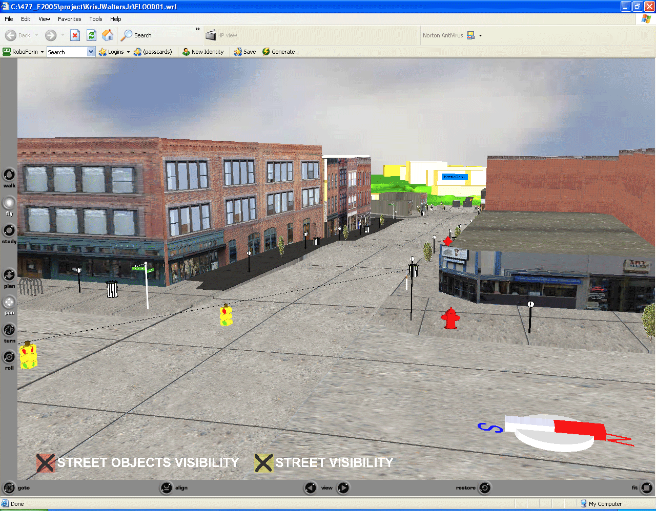 Animated sequence of screen shots taken from three linked virtual reality models, above. To get the full experience, enter the scene and drive around! |