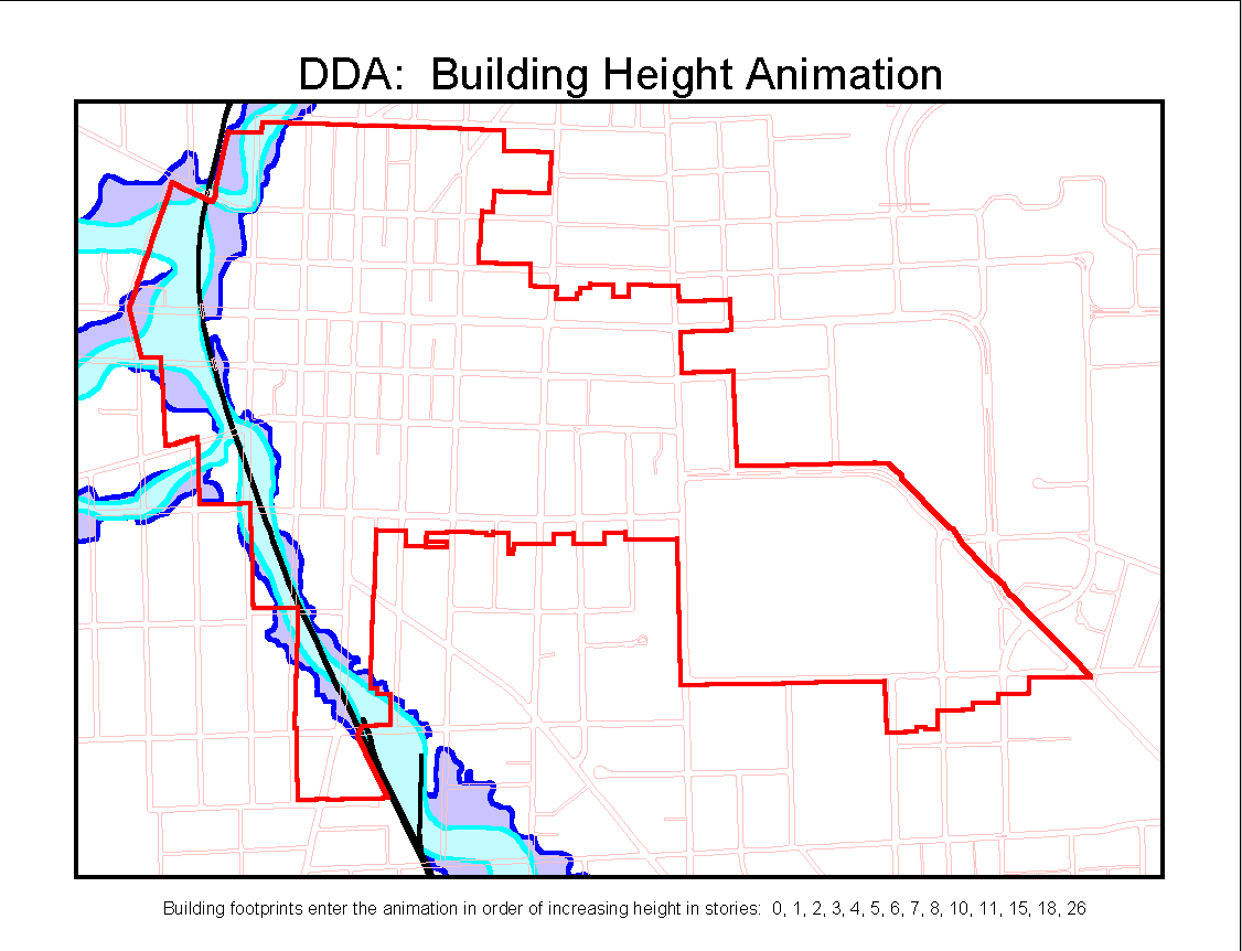 from 3 to 12 stories, in 1 story increments, in the center of the DDA,