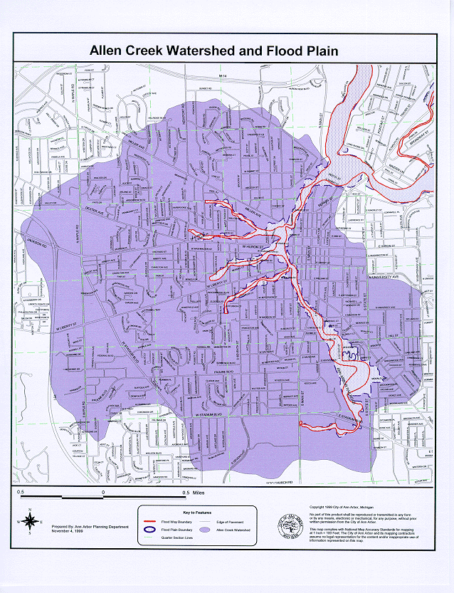 Allen's Creek Flood Plain, Opportunity or Disaster? Sandra Lach Arlinghaus Maps supplied by the City of Ann Arbor (with particular thanks to Merle Johnson, Karen Popek Hart, and Wendy Rampson), as noted (http://www.ci.ann-arbor.mi.us) and by the Southeast Michigan Council on Governments (thanks to Gwo-Wei Torng) (http://www.semcog.org).