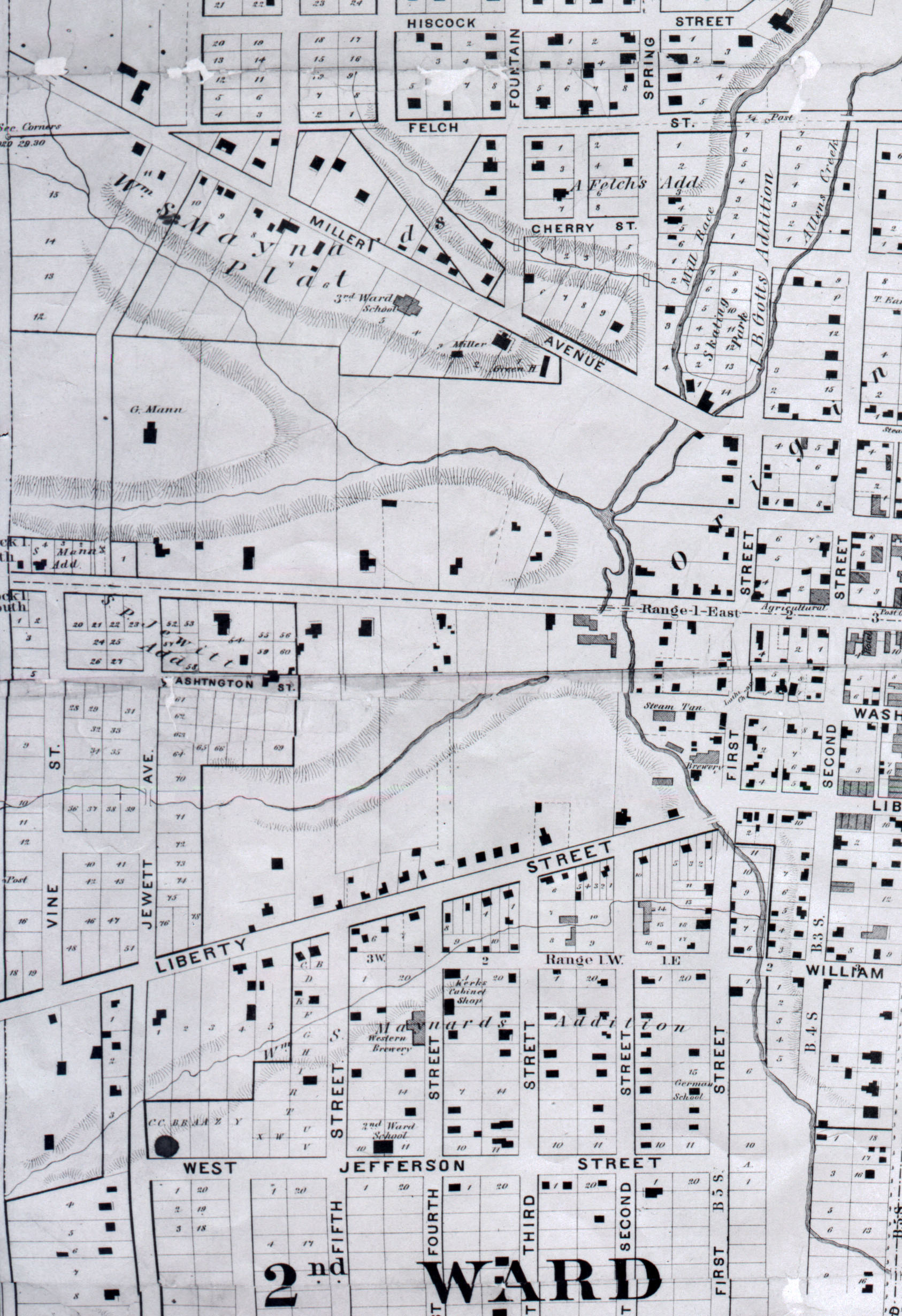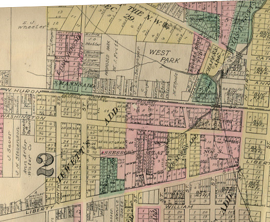 Plat map of the project site in Ann Arbor, 1869. Courtesy Map Library of the University of Michigan. |