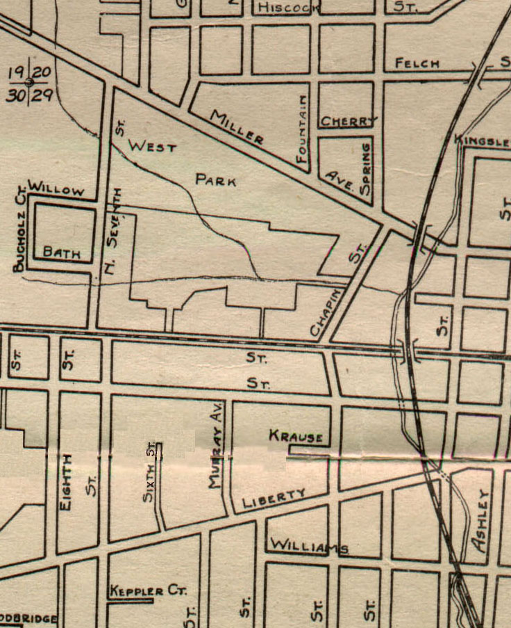 Context: Cultural, cont'd The map at the left indicates some additional changes to the project site by the 1920s. Though obviously not as detailed as the previous maps, there are several more streets shown, including Murray Street and what is now the Mulholland portion of Sixth Street. Interestingly, Allen's Creek is still indicated aboveground, providing a clue that it had not yet been undergrounded by the time this map was drawn.