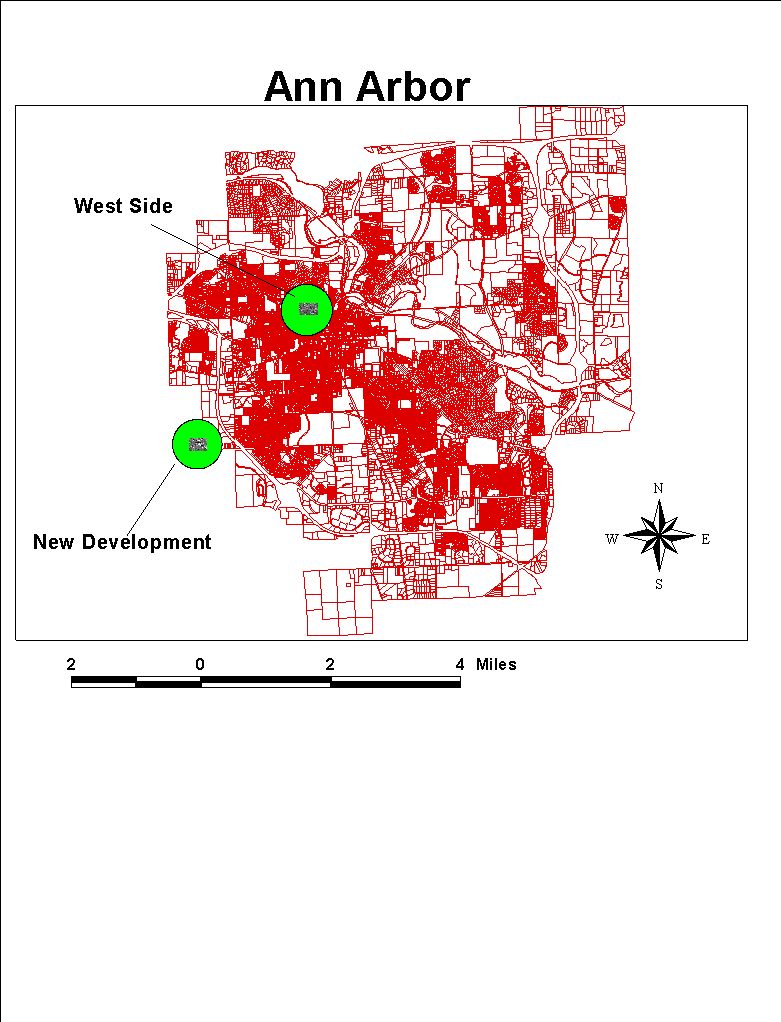Work with the City of Ann Arbor and the HWC in coming up with imperviousness percentages & with investigating cluster development