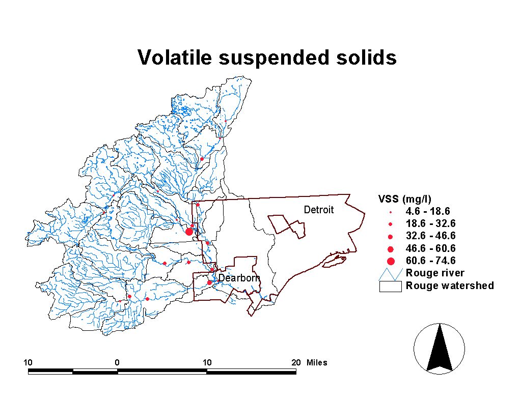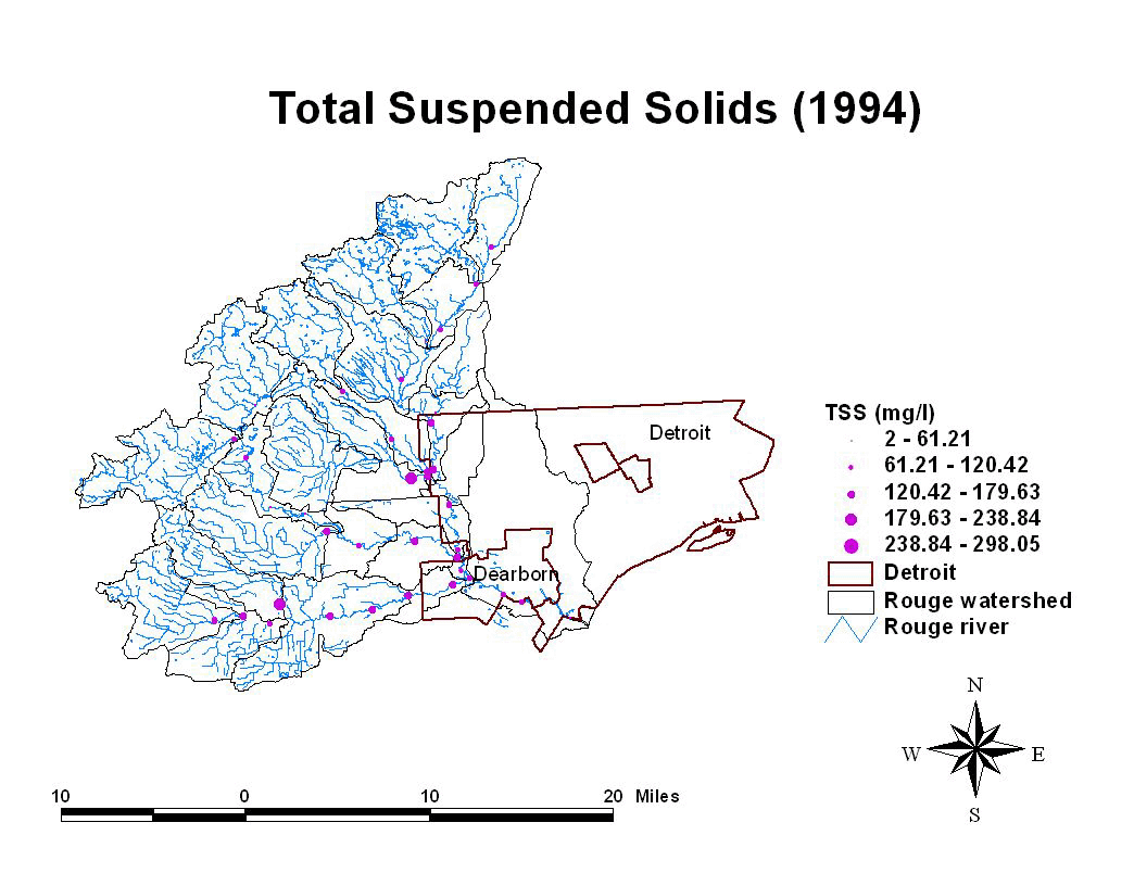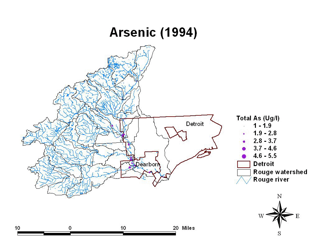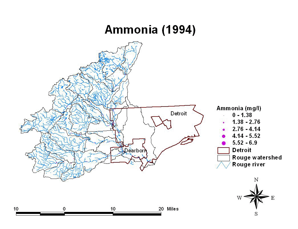 Detailed data on water quality for the Rouge River Basin was obtained from the Wayne County Rouge River National Wet Weather Demonstration Project (1999). This data was processed, in order to determine the variation of concentration of specific pollutants over the time period between 1994 and 1998. Not all sites were sampled every year for all contaminants, making any comparative analysis difficult. However, animation maps allow to see that changes in concentration occur through time, and the variation pattern might indicate the response to specific contaminating events, rather than due to more permanent land use patterns. The animated maps of those contaminants that were sampled more frequently are listed below: