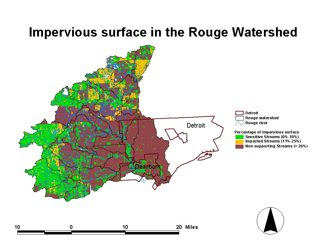 The mission of this project is to identify opportunities for environmental improvement in the area of the Rouge River watershed. The method involves analyzing the spatial aspects of water quality in the watershed in order to identify targets for policy implementation.
