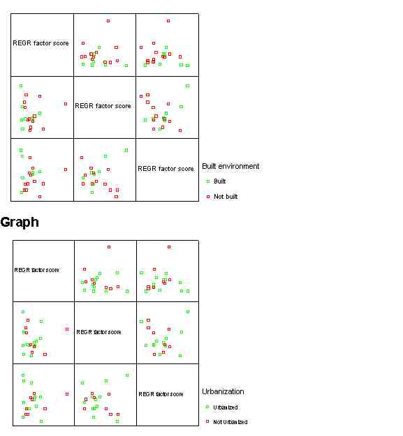 Finally, the principal components analysis resulted in a considerable overlap by imperviousness factor, using the first three components that explain most of the variation. Nevertheless, some grouping can be observed by built factor especially, and also by the urbanized factor (see graph). Built environment refers to either urbanized or non-urbanized areas that are densely built and have various service infrastructure. An urban park, for example, would be an urbanized, but unbuilt area.