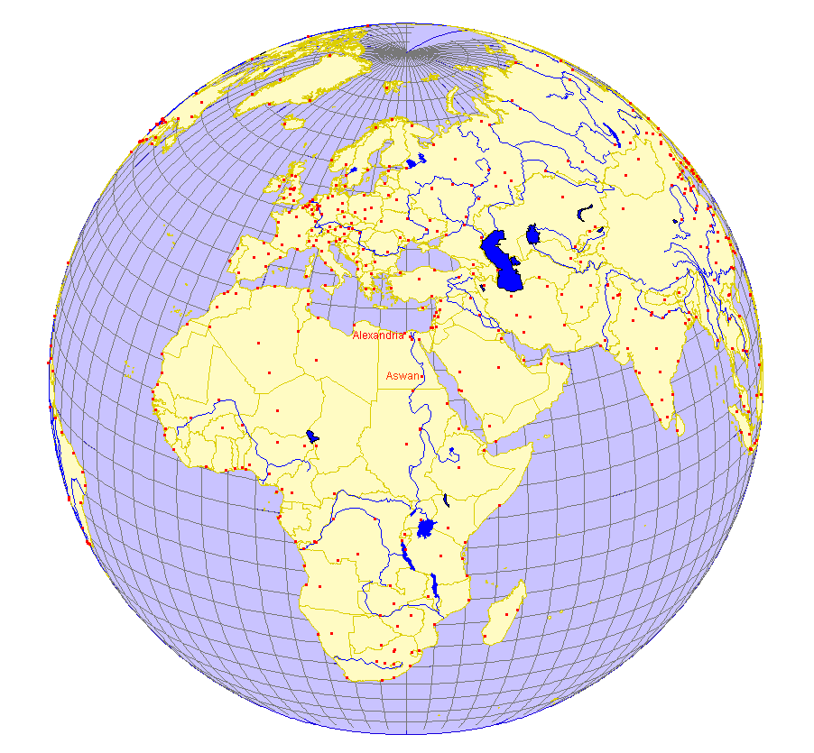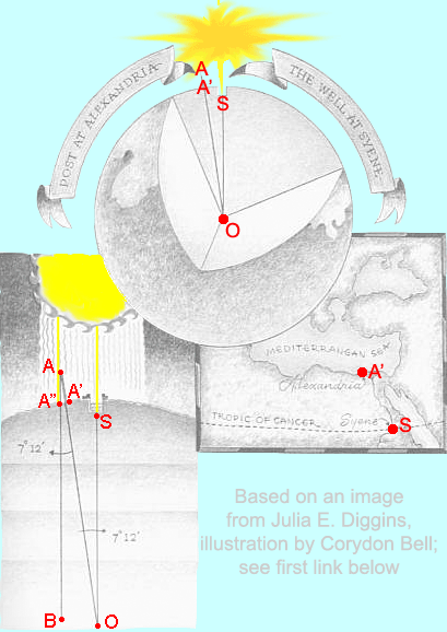 Eratosthenes's measurement of the circumference of the Earth, based on
