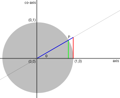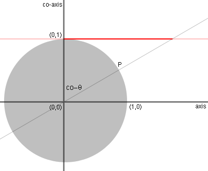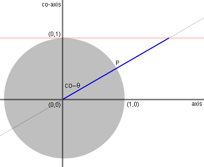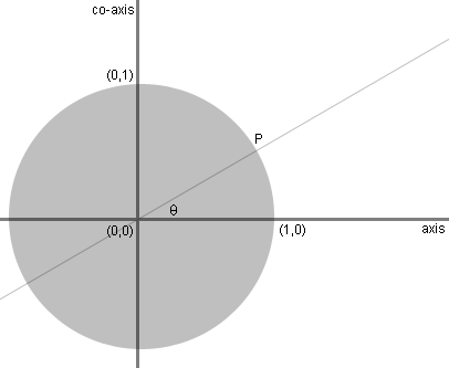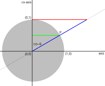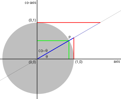 Unit circle, axis, and complementary (orthogonal) axis designated as co-axis. |